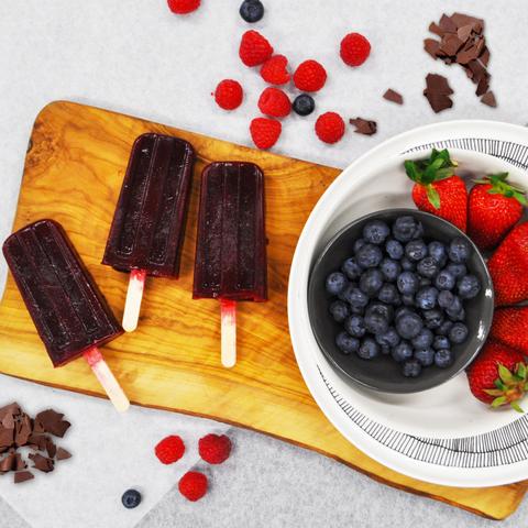 Blend frozen blueberries in a food processor for 15 seconds. Add yoghurt or cream and icing sugar and mix to blend well.